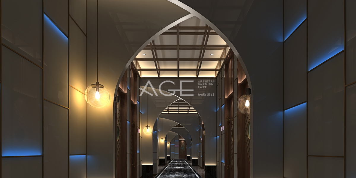 按摩區走道墻面采用肌理漆、流水石等材質使空間更具親和力,轉折處沿墻燈光造型和創意的門牌燈以及局部的軟裝景觀相呼應,成為空間亮點。整體設計暖色調,用規則和不規則搭配出層次感,給人一種氣勢恢宏、壯麗華貴、細膩大方的大家風范。花紋大理石用線條的元素點綴出賽道的感覺,兩面墻體設計的整體性很強,用彎彎曲曲的線條和長方形線條點綴出有格調的氣場。天花板設計的一個個方格的排列有序,與下方大理石地板相呼應的設計,更顯出線條與方格搭配的華美之氣。